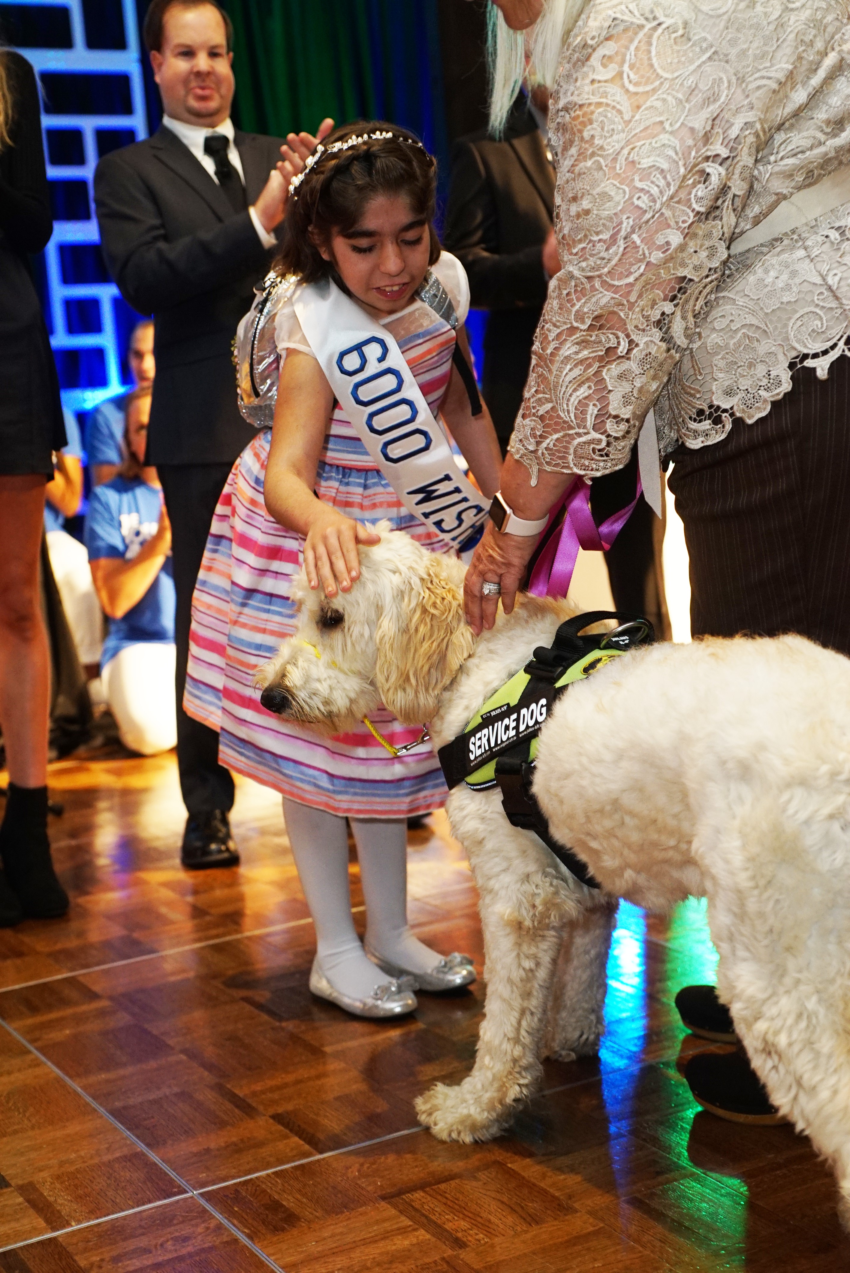 Brea, CA – Melissa is a sweet, smart and active ten-year-old girl living with a variety of congenital disorders in which hypoglycemia is caused by excessive insulin. While this diagnosis affects her everyday life, Melissa does not let it get in the way of her being a kid. Like most ten-year-olds, Melissa loves all things Disney, including the music and her favorite movie, Frozen. She also enjoys things like playing tag, watching videos on YouTube, and her most favorite thing to do is ice skate! While Melissa has many interests, there was one thing missing from her day-to-day life: a dog! Melissa’s wish was to have a service dog that she could play with, love, take everywhere, and that could help notice when her blood sugar is low. She wanted a companion to be there with her so she would not be lonely while she is sick. Melissa’s wish was granted as our 6000th wish at our Evening of Wishes Gala in front of our donors, volunteers, and staff. She was very surprised and excited when she finally met her dog, “Luna.” Melissa and her family are very grateful that her wish came true and are looking forward to the many memories that she will make with her new friend.