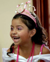 Little girls love playing dress up and believing in fairy tales. When given the chance to make her one true wish, Samantha, diagnosed with Acute Lymphoblastic Leukemia as a baby, knew exactly what she wanted. Samantha said, “I want to be a princess for a day. I would like to wear a pink sparkly dress, like Sleeping Beauty’s dress. I would also like to wear shoes and jewelry. I would dress pretty, sit down and eat slow. I would eat cereal, bread and strawberries.”Samantha’s wish came true on a beautiful morning at the Mission Inn in Riverside, which served as her castle for the day. She arrived by limousine, where a series of surprises awaited her. Samantha was whisked away to a room high up in her “castle” and was led a short time later down a spiral staircase inside the atrium. As she stepped down the twisting steps, she saw a crowd of people holding signs and cheering for her. Samantha was greeted by two princesses who then crowned her. After her coronation, she was led outside where a horse drawn carriage was waiting to take her on a ride through the city. When they returned, Samantha and her family and friends were treated to a very special princess party. Samantha danced and ate slowly.